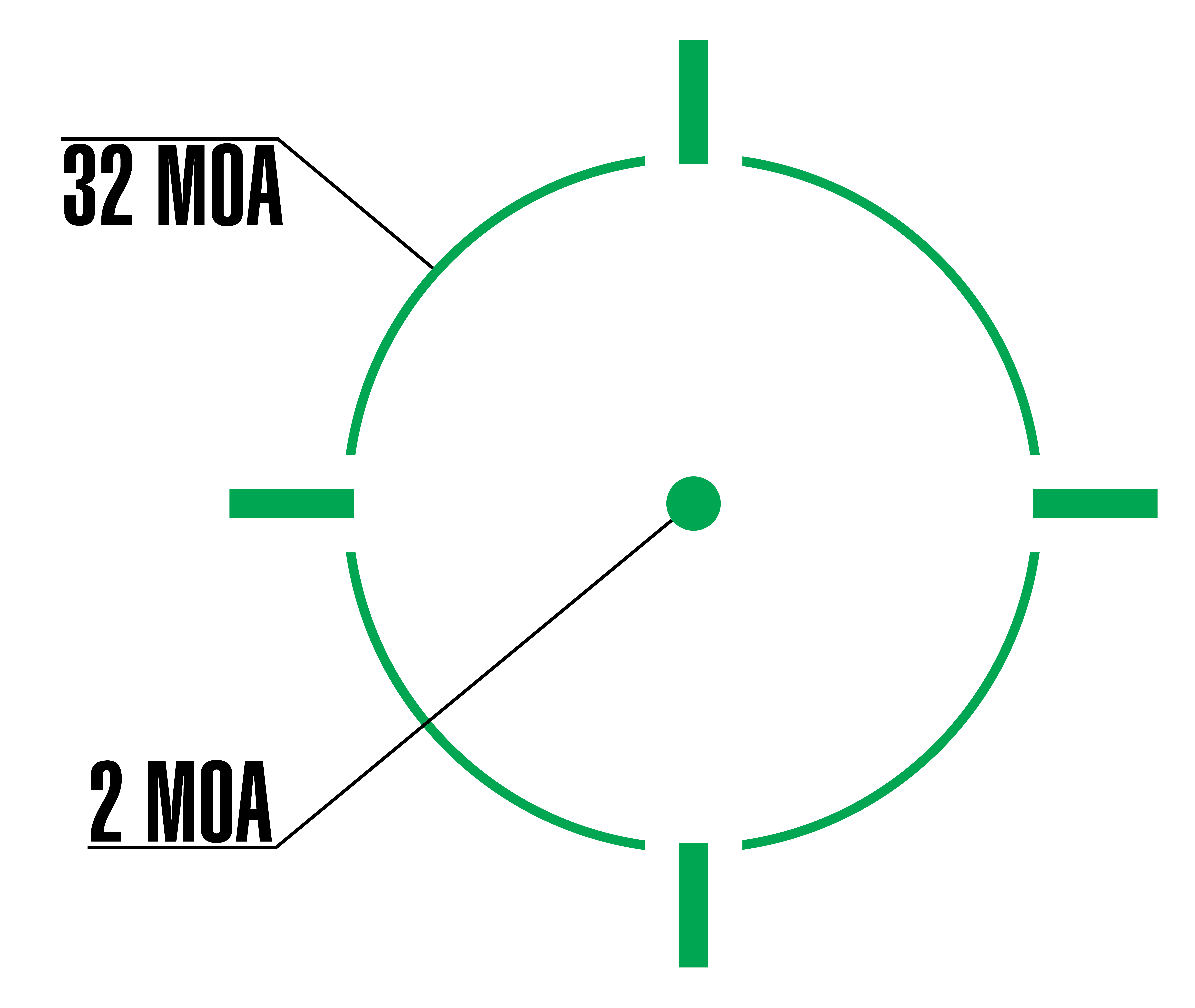точка 2 MOA / круг 32 MOA / круг с точкой 2/32 MOA |
