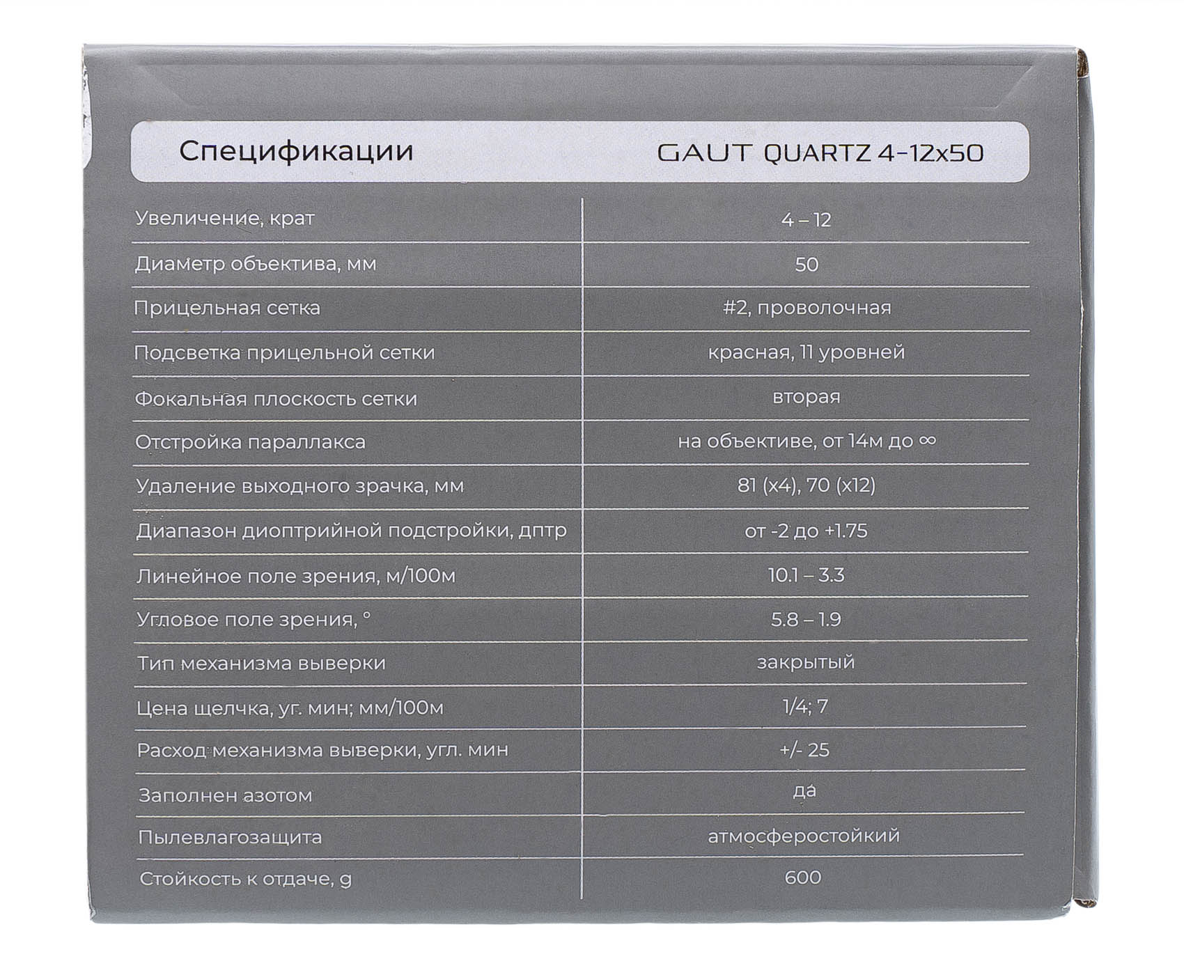 Ключевые преимущества Gaut Quartz 4-12x50 AO: