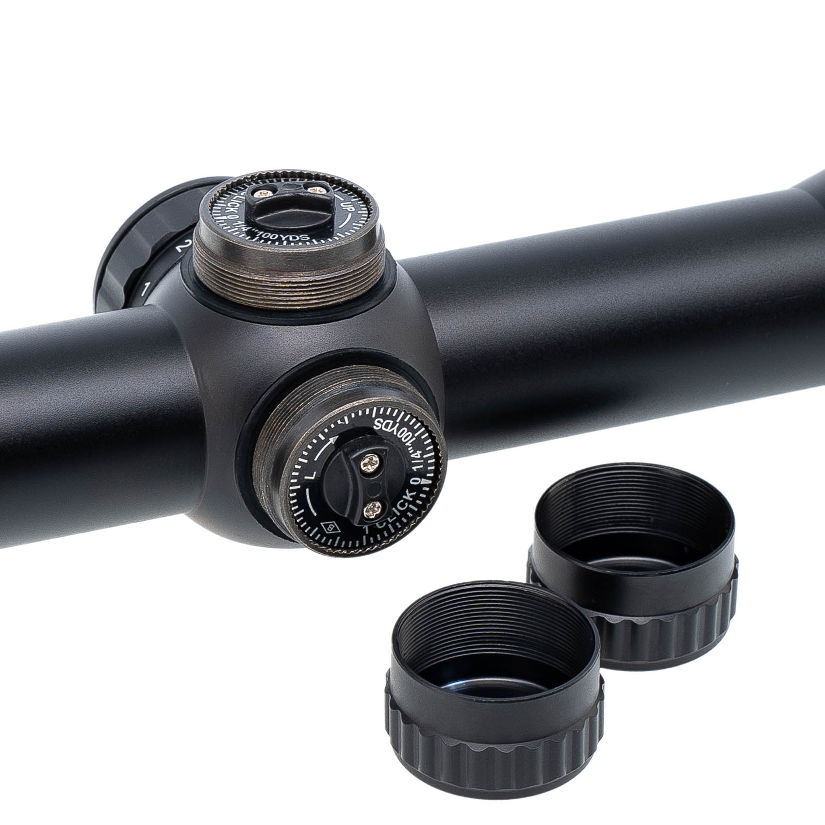 Регулировка параллакса на объективе (AO): Позволяет точно настроить прицел для различных дистанций, устраняя ошибку параллакса.