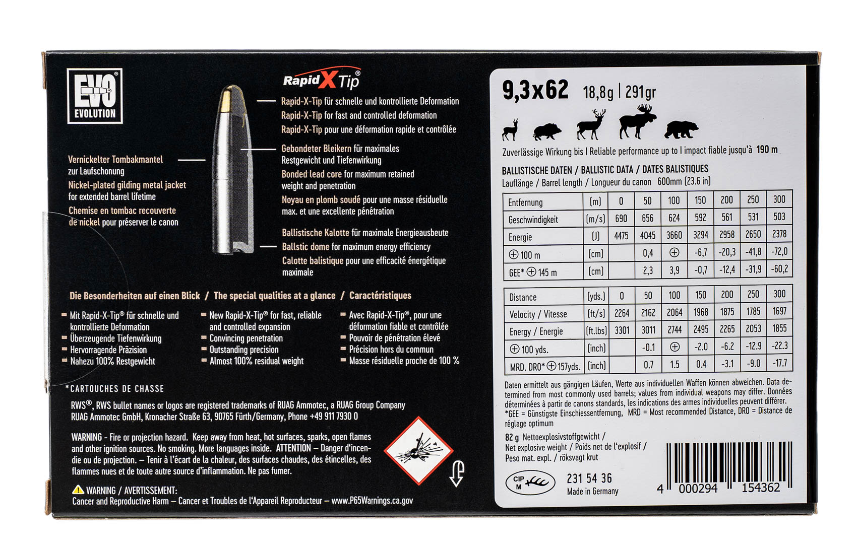 Патроны к. 9,3x62 RWS пуля EVO 18,8 г