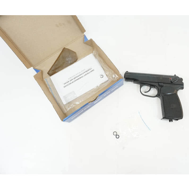 пистолет, магазин, кольцо 10,5х1,4, кольцо уплотнительное 6х2, кольцо клапана 3,7х1,8, элемент запорный, отвёртка, паспорт (инструкция) |