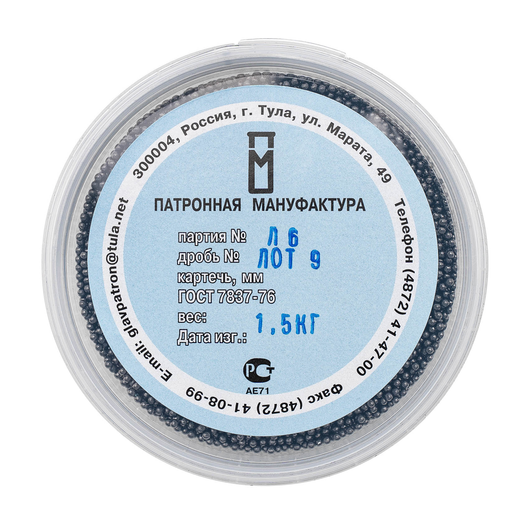 Дробь №9 ЛОТ (ПМ) 1,5кг (8шт/кор)