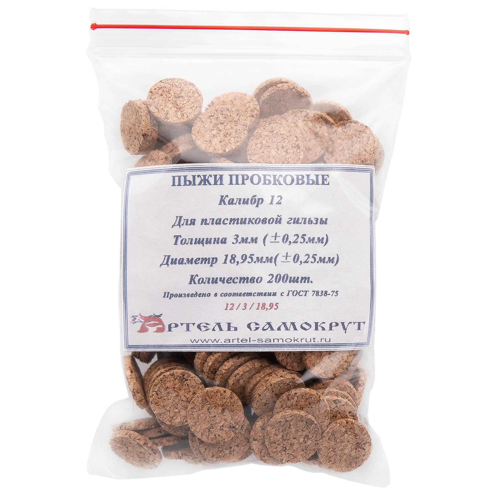 Пыж пробковый "Артель Самокрут" 12к 3 мм (200 шт) для пластиковой гильзы