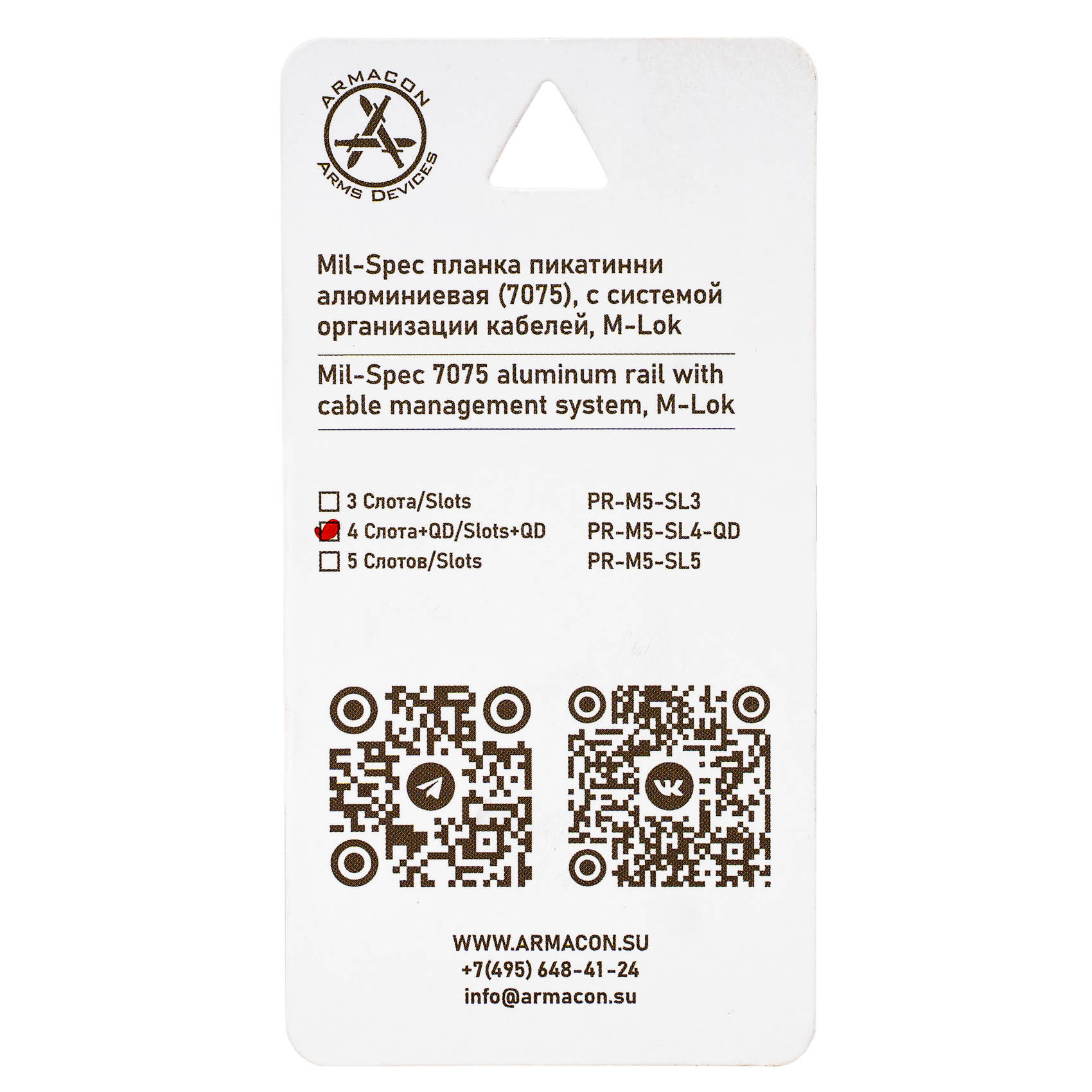 Планка пикатинни M-Lok 4 слотов с гнездом под QD антабку, аллюминий 7075 (ARMACON)